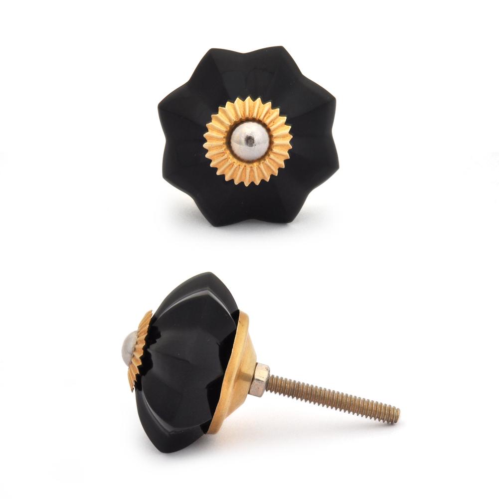 Black Glass Flower Knob