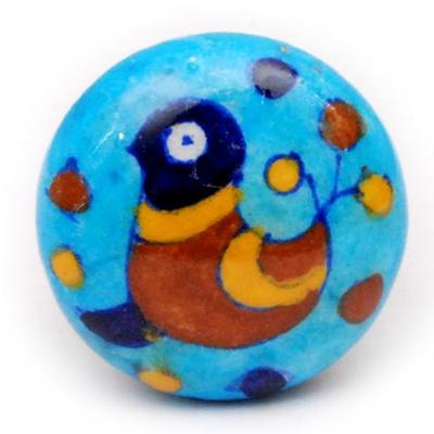 Blue, Brown and Yellow Bird on Turquoise Knob