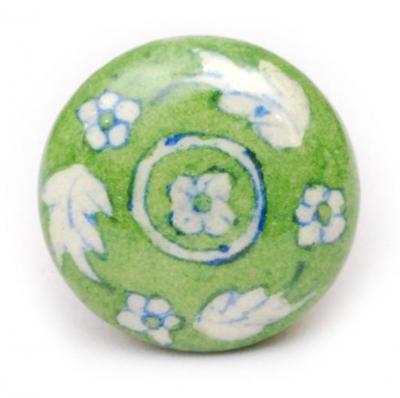 Green and White Floral Cabinet Knob