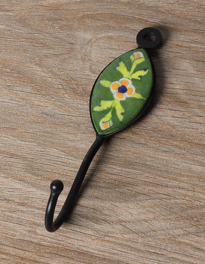 JAIPUR BLUE POTTERY HANDMADE OVAL HOOK WITH IRON - GREEN