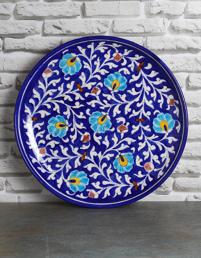 • Handcrafted Blue Pottery Decorative Plate with traditional motifs.