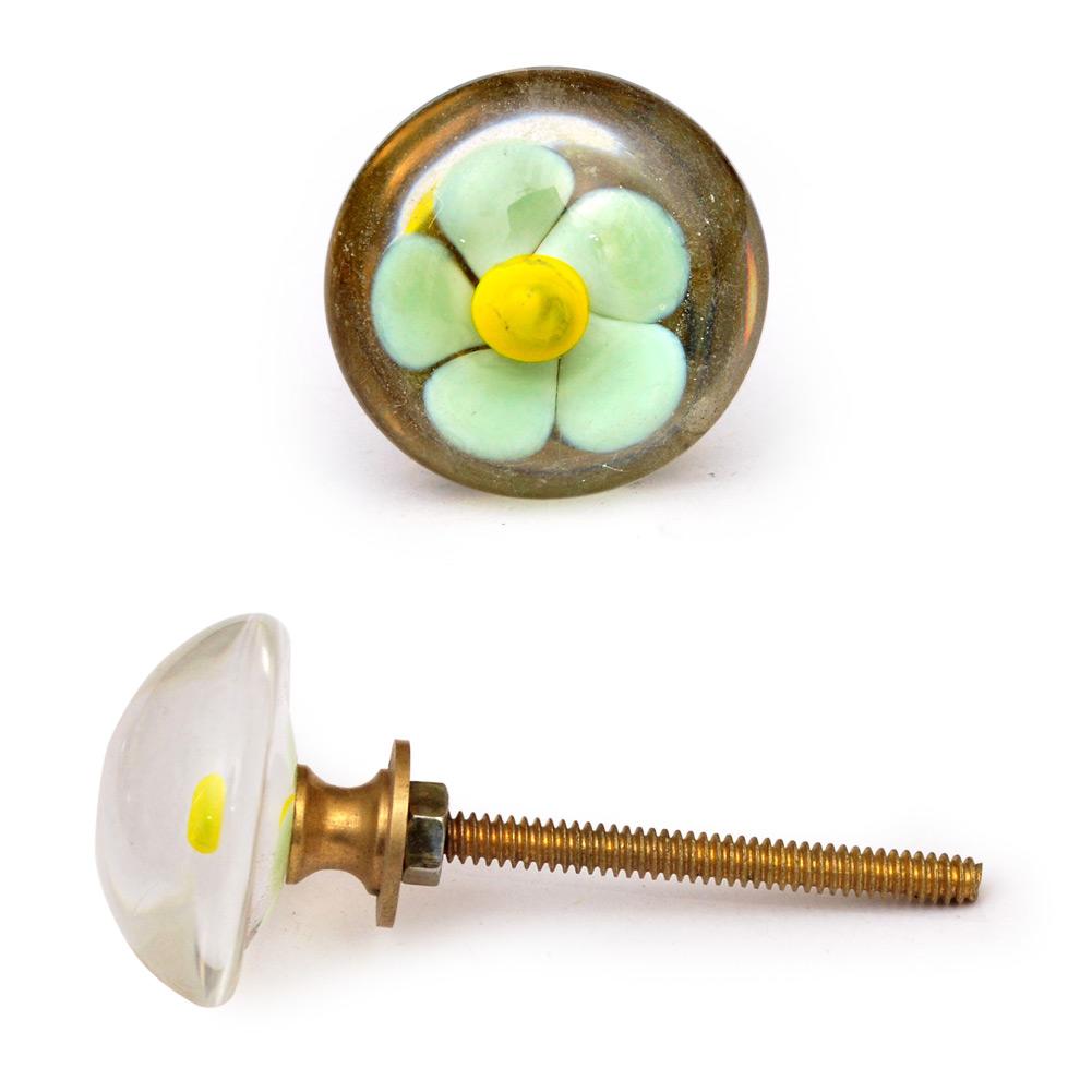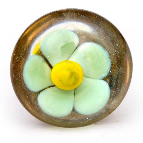 Light Turquoise with Yellow Center Flower Glass Knob
