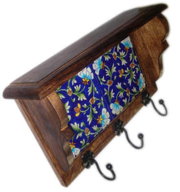 Neerja Tile Wooden 3 Hook Hanger with 6x6 Inch tile. Also available in over 50 designs