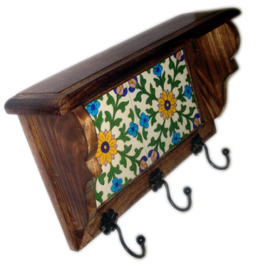 Neerja Tile Wooden 3 Hook Hanger with 6x6 Inch tile. Also available in over 50 designs