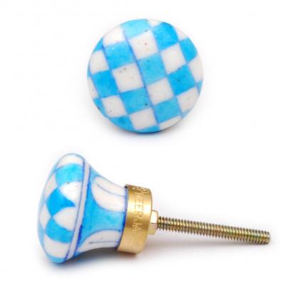 Turqouise and White Checkerboard Cabinet Knob