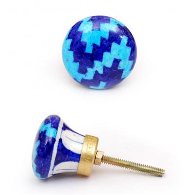 Turquoise and Blue Zig-Zag Cabinet Drawer Knob