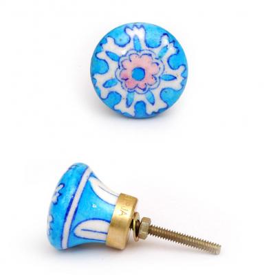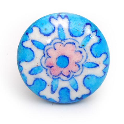 Turquoise Cabinet Knob with White, Pink and Turquoise Flower